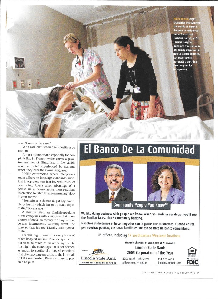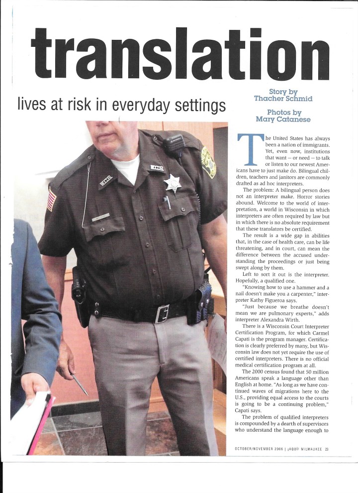This feature story about medical and legal interpretation and translation — and the frequent problems with hospitals, doctors, attorneys and courts using children and other unqualified interpreters — ran in Aqui Milwaukee, a magazine which was started by the Milwaukee Journal Sentinel a couple years before the economic collapse of 2008. The magazine later sold to the Hispanic Chamber of Commerce of Wisconsin for $1.