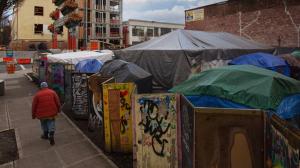 Depending on the point of view, Portland’s most visible homeless encampment has become either a terrible eyesore, or an innovative way to house the unsheltered, with nonprofit status, a board of directors and even a makeshift computer lab.