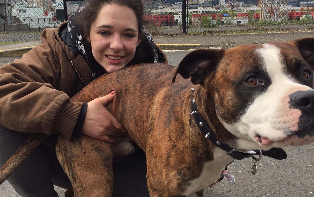 Emma Christensen, 27, walking with her pit bull, Prince, near the east end of the Steel Bridge, where she’s lived the last three years, said she had a miscarriage four months ago. Yet she said she spent less than eight hours at a local emergency room before leaving because staff were disrespectful towards her.