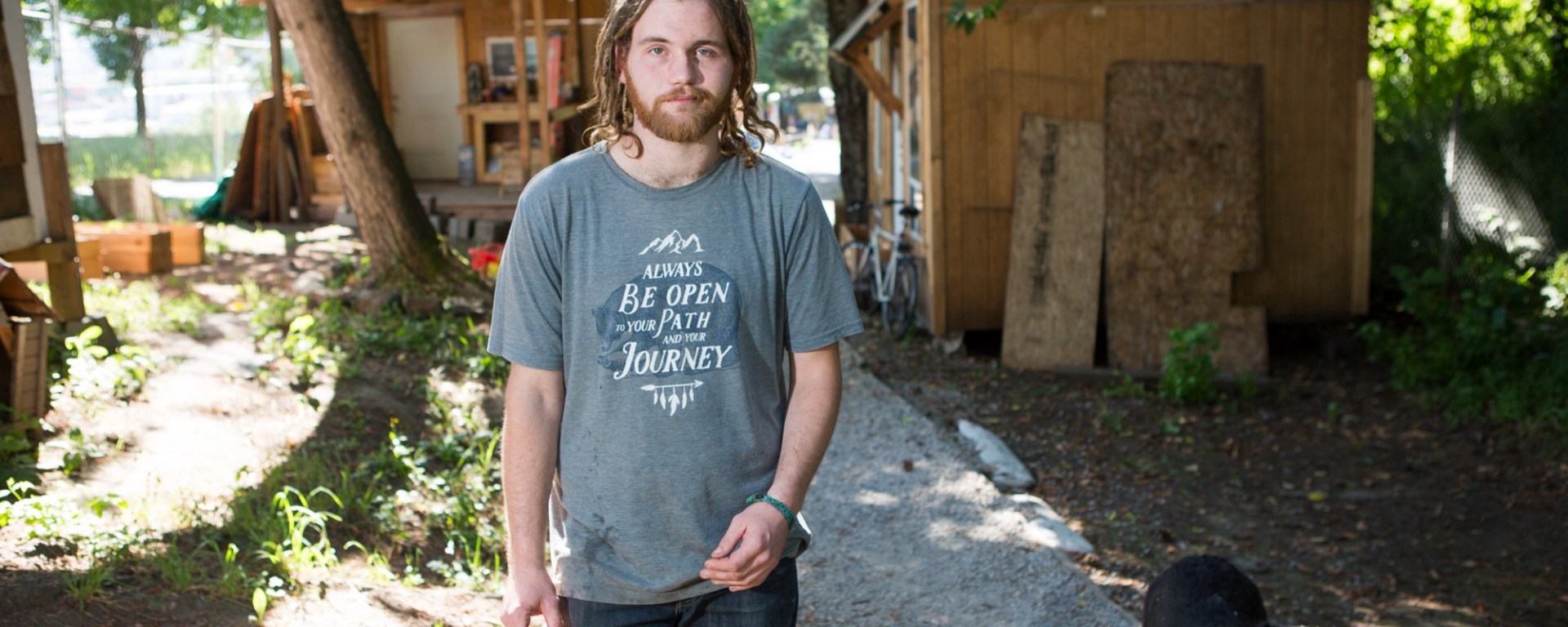 Brimmer lives in a bunkhouse at the north end, woven into the woods alongside North Greeley Avenue. The village’s spine is a rickety, raised plank walkway that residents jokingly call the “Raised Walkway of Death,” or “Captain Jack Sparrow’s Flight.” One disabled resident who is a veteran travels the precarious route in her electric wheelchair, a feat which is astonishing — and scary — to watch.