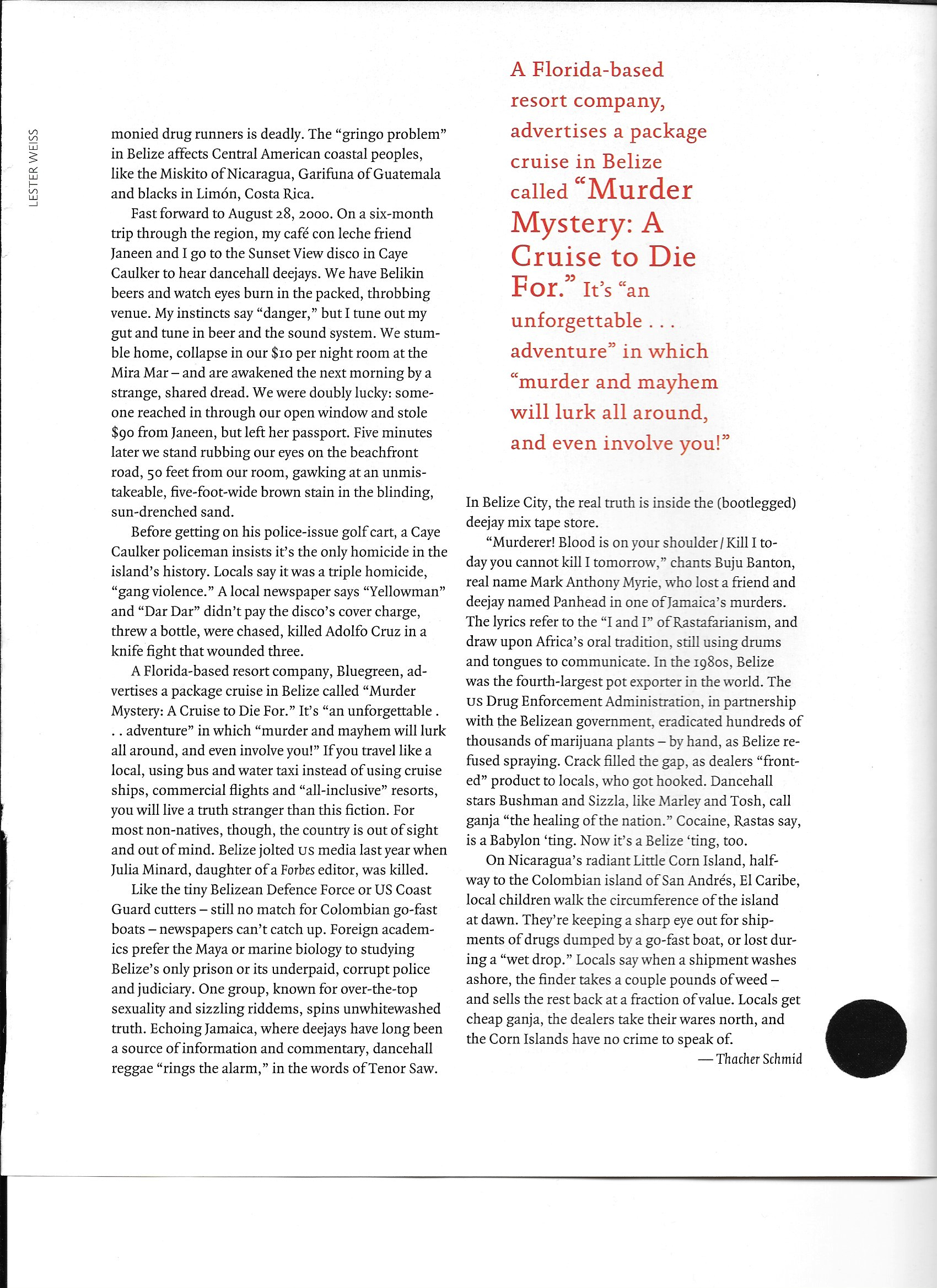 THACHER SCHMID lives in Wisconsin. He can be reached at: thacherschmid@hotmail.com