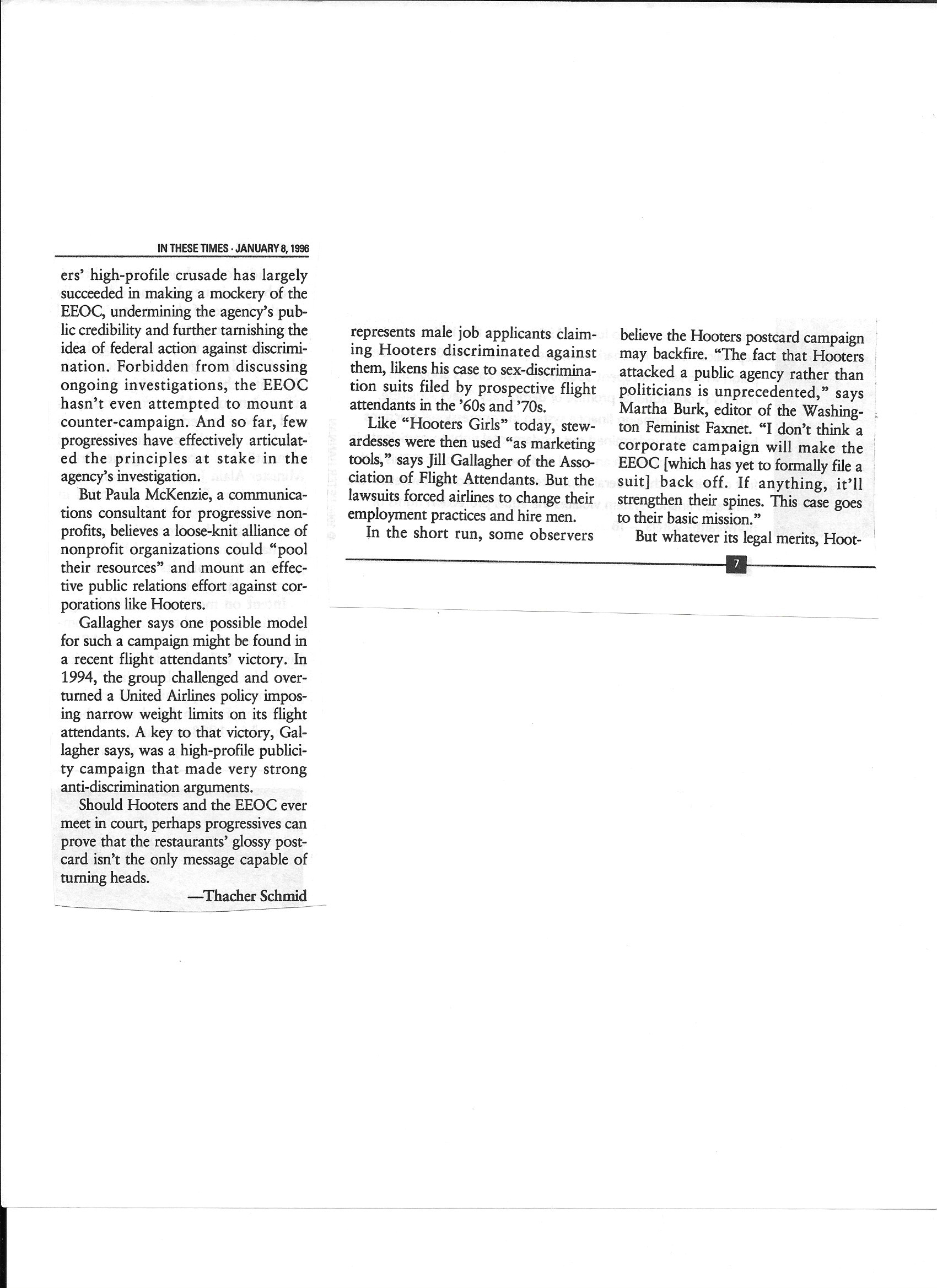I wrote the following piece for Chicago-based progressive magazine In These Times, my first national freelance article, while interning at the Feminist Majority Foundation in Washington, D.C., where I was the first male intern.